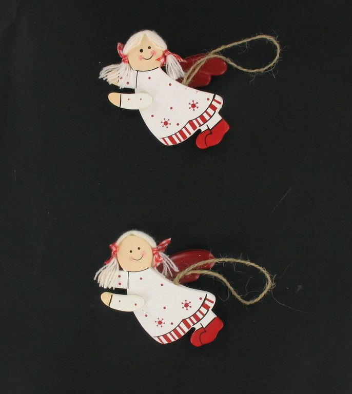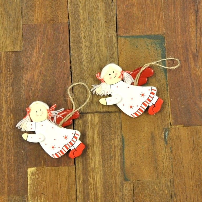 A long clothesline with Christmas angels and stars.
