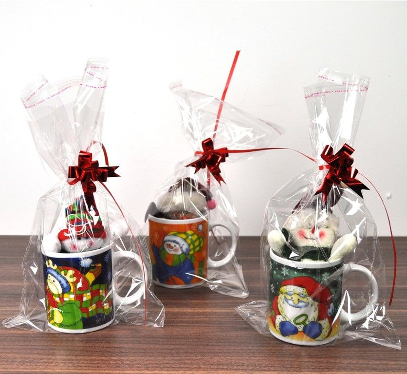 Beautiful Christmas mug with print. The mug is a cute plush doll snow. Communal wrapped with a beautiful red bow. Thanks so fun for sales during the Christmas season, or as a gift for your staff obviously.