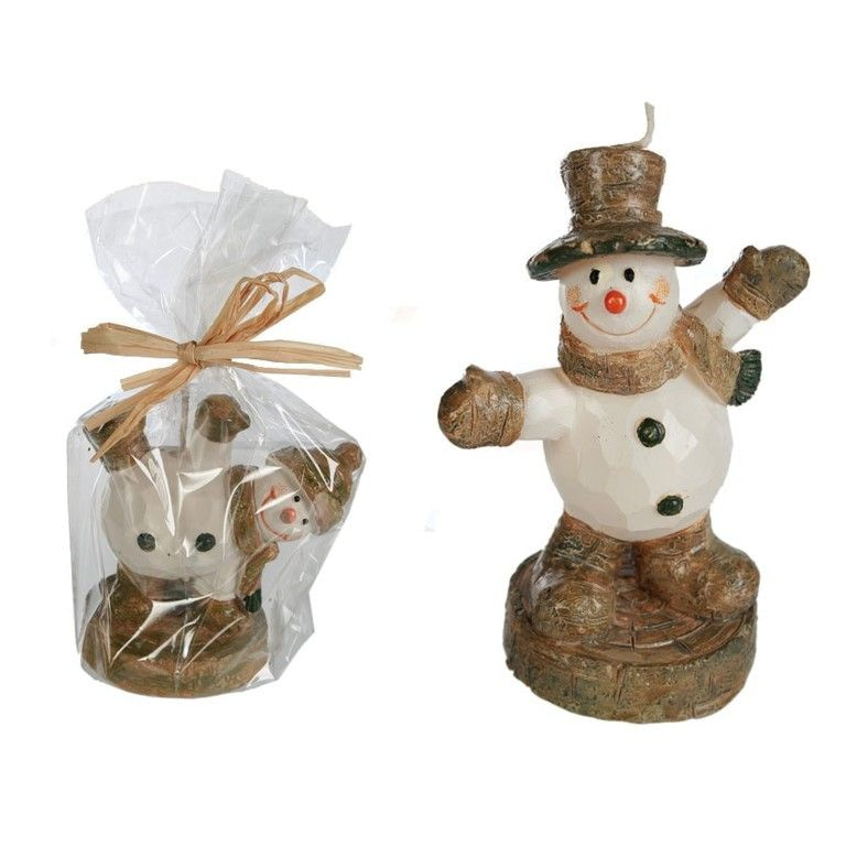 A funny candle in the form of a snowman. Beautifully wrapped in a cellophane with a bow of straw .Ideal Christmas gift.