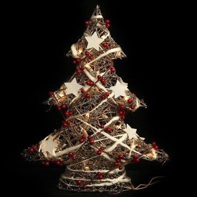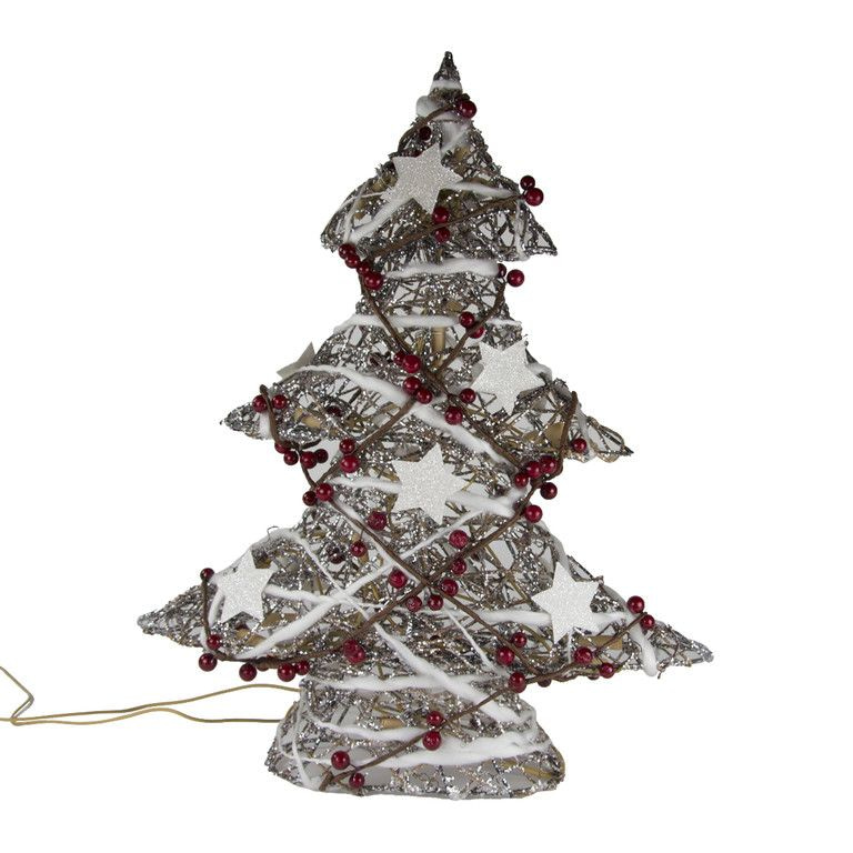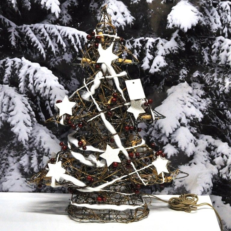 A large Christmas tree decoration full of stars, berries and snow. The Christmas tree is fitted with a plug, and 20 lights.