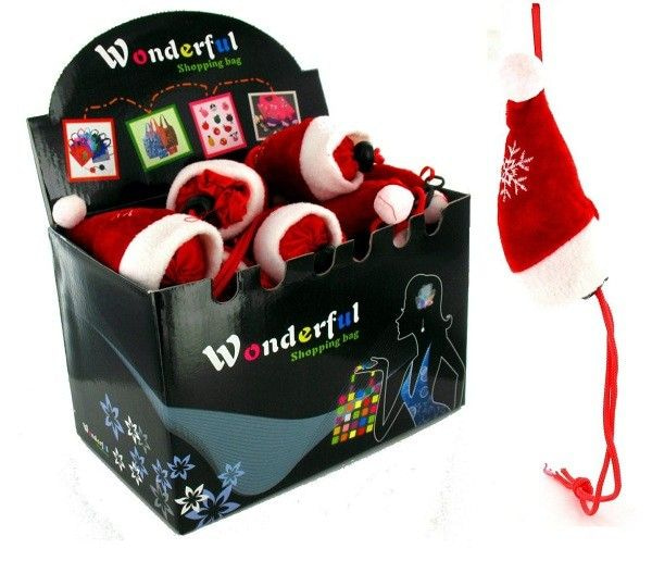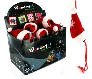 Beautiful Christmas shopping bag, wrapped in a Santa hat shape.