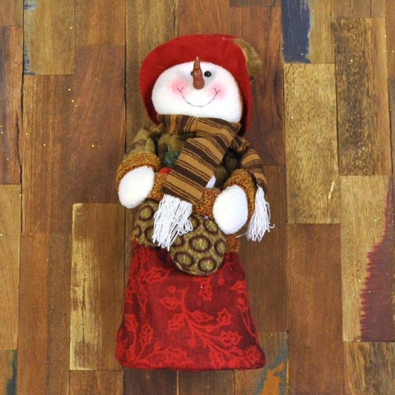 Beautiful decoration snowman, dressed warm for the winter months. Beautiful plush for everyone in the living room.