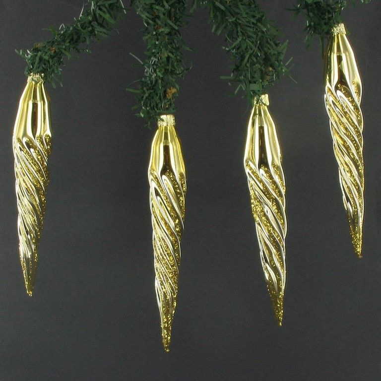 Beautiful Christmas tree decorations. Gold colored bucks with gold glitter.