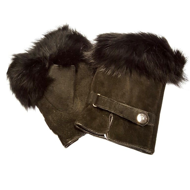 S_115007C - SUEDE GLOVES WITH FUR BLACK L (1st)