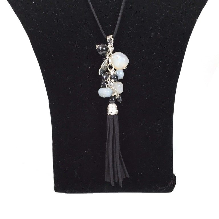 S_600207E - HANDMADE NECKLACE WITH BLUE STONE IBIZA ORIGINALS TAUPE / PURPLE (1st)