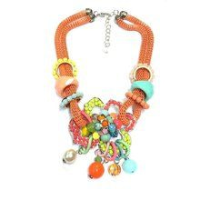 S_600223C - IBIZA ORIGINALS HANDMADE NECKLACE WITH LEAF ORANGE / RED (1st)