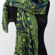 S_2264005 - LUXE SCARF CREAM / TURQUOISE WITH BUTTERFLIES (1st)
