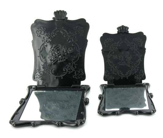 S_83687A - Art.nr: 83687A - BLACK HANDBAG MIRROR LARGE 10x12cm (6pc)