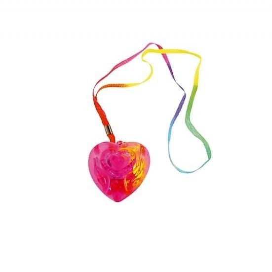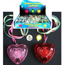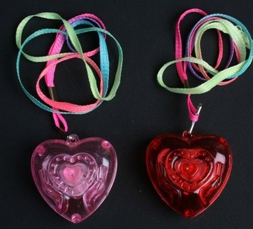 Every heart has a colorful cord to hang the luminous heart on your neck.
