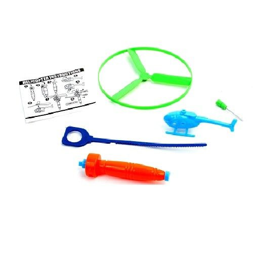The flying away helicopters, very nice and nice. Put the propeller on the firing mechanism and pull on the cord. Now the propeller meters shoots / turns into the air.