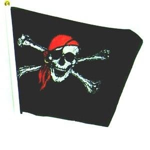 Pirate flag on stick, very nice for a pirate party. Flag dimensions: 30 x 21 x 14 Cm.