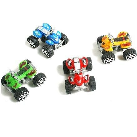 Tough friction quad, pull it backwards and release it. Then he drives forward automatically. is delivered in mix colors.