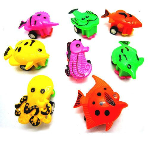 Pull Back fish, pull this fish backwards and release it. Then the fish automatically goes forward. is delivered in mix colors.