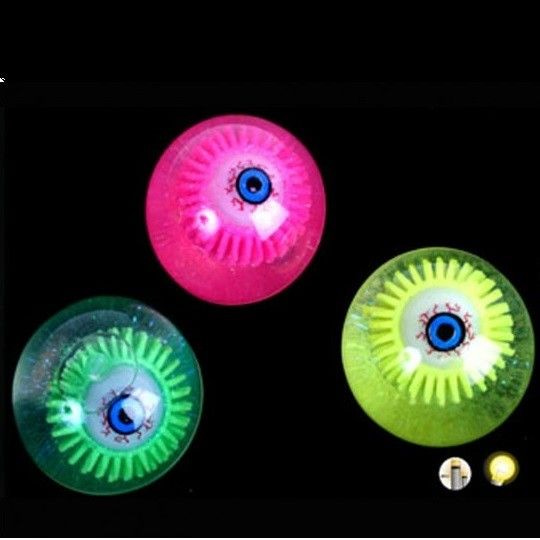 Tough Luminous Bouncing balls with eyes. Diameter 6.5 Cm. Packed in a Display box.