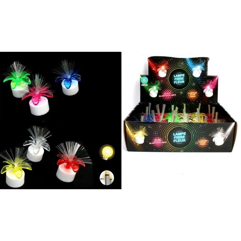 Luminous fiber LED flowers, put them down during your party or event and they create a beautiful atmosphere. Batteries included. Delivered in a display.
