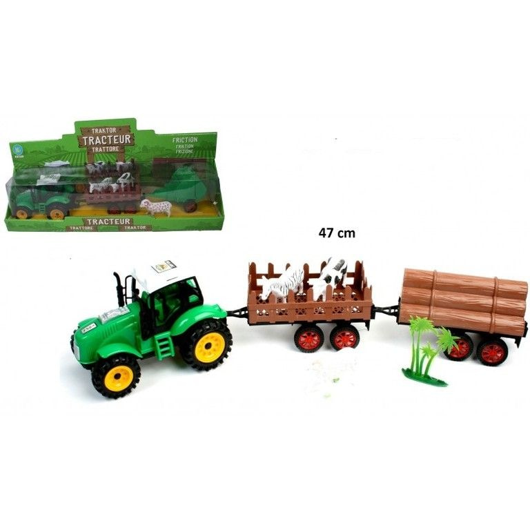 Large tractor set, equipped with tractor, trailers and animals. This set is packed in a window box of 50 x 24 x 13 cm.
