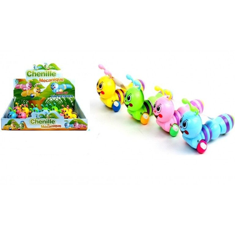 Nice big wind up caterpillars in a display. Turn the caterpillars on and release them .. then this caterpillar will drive forward automatically. Will be delivered cheerful colors in a display in Mix.