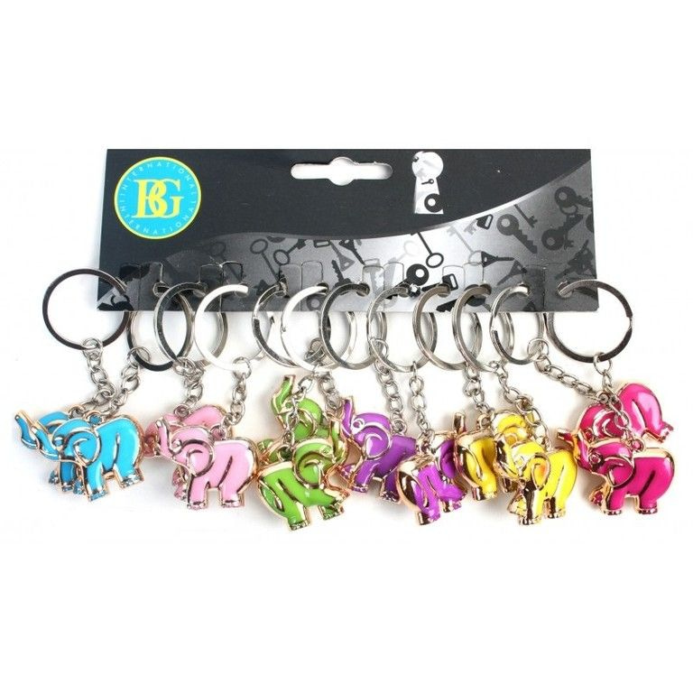 Mix color Elephants keychains. Packed per 12 pieces on a suspension card.