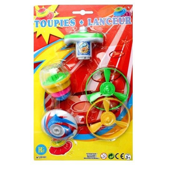 Large card with a 5-piece tollen set. This way you can roll around with this set of tolls, or shoot the flying saucers into the air. Dimensions of the card: 29 x 19 x 4.5 Cm.