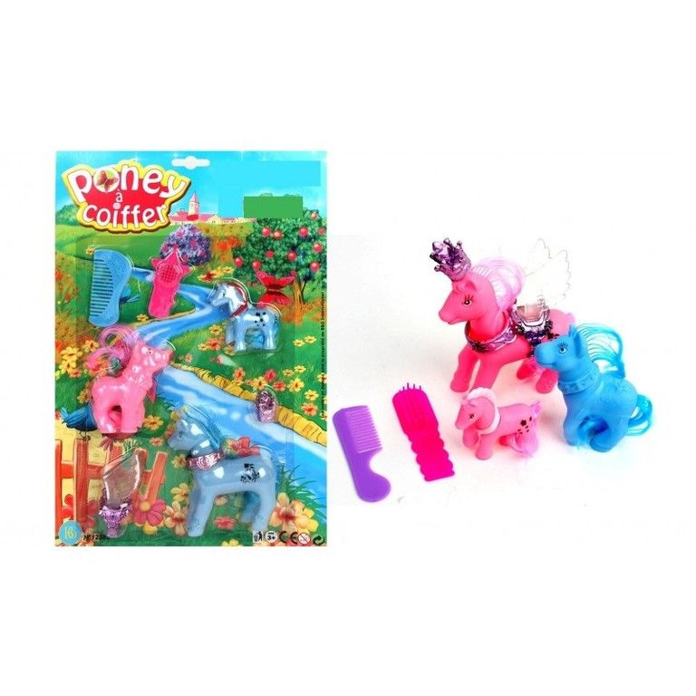 Very nice big card with a complete Pony famile, including assecoires. Packed on a large card of: 38 x 25 x 3 Cm.