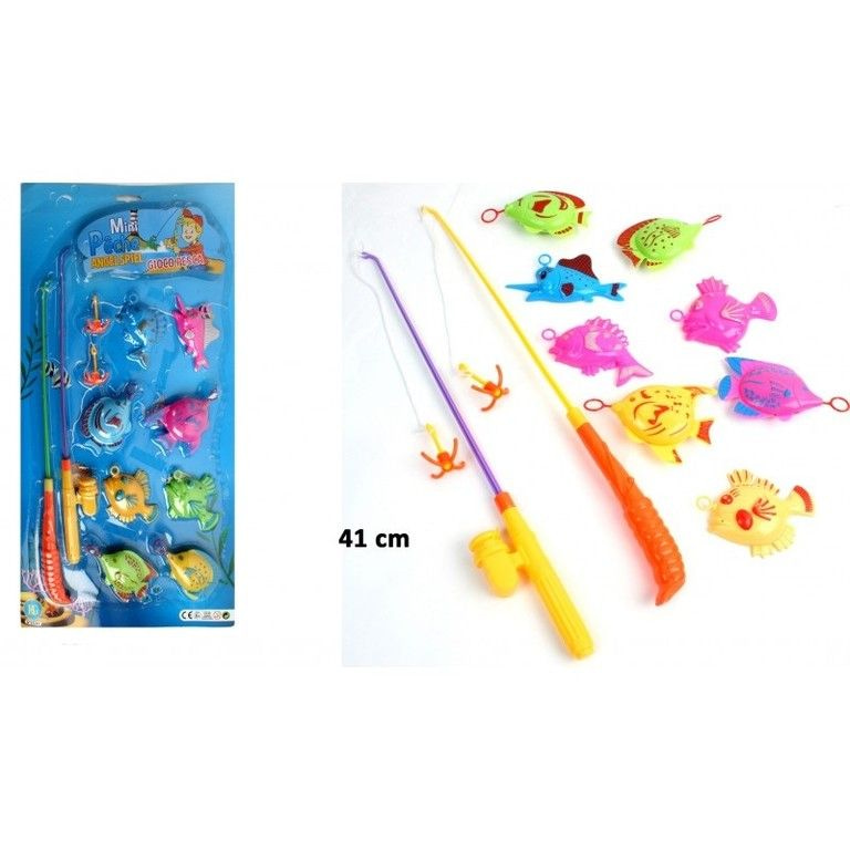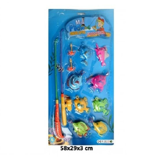Mega big fish set of: 58 x 20 x 2 Cm. Packed on a card. this large magnetic fishing game consists of: 2 fishing rods and 8 fish.
