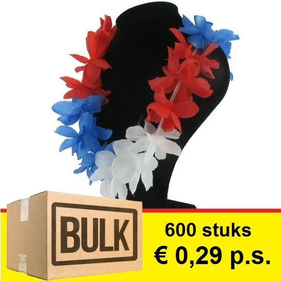 Beautiful Hawaii wreath with red, white and blue. Fun to use during a Dutch evening, Carnival, King's, European Championship and World Cup.