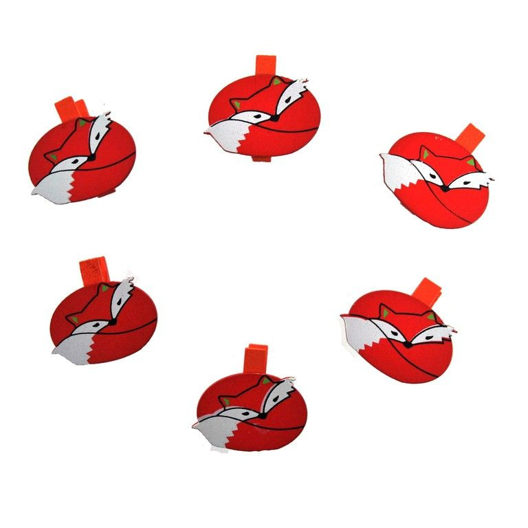 Lovely little pegs for example, cards and decorations along to hang. On each clip is a cute little fox. The clip is 3.5 x 3.5 x 0.5 cm.