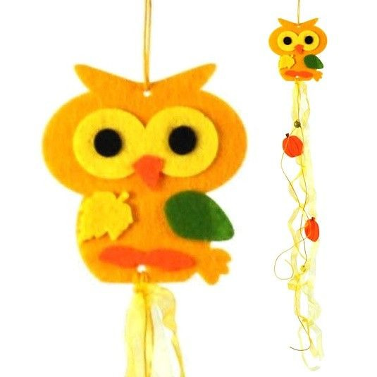 Beautiful decoration pendant in the shape of an owl. This pendant has an owl on top and long ribbons / fringes at the bottom.