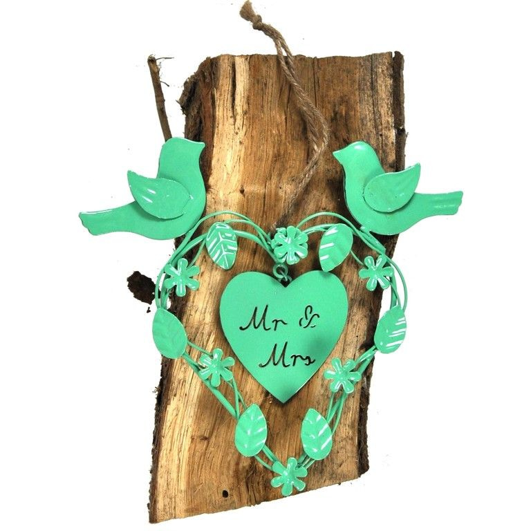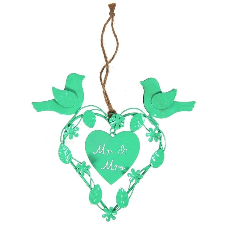 Beautiful decoration pendant in garden or in the house. This pendant comes in the shape of a heart in there with a heart and the words "Mr. & Mrs.". On top of the heart are two more birdies.