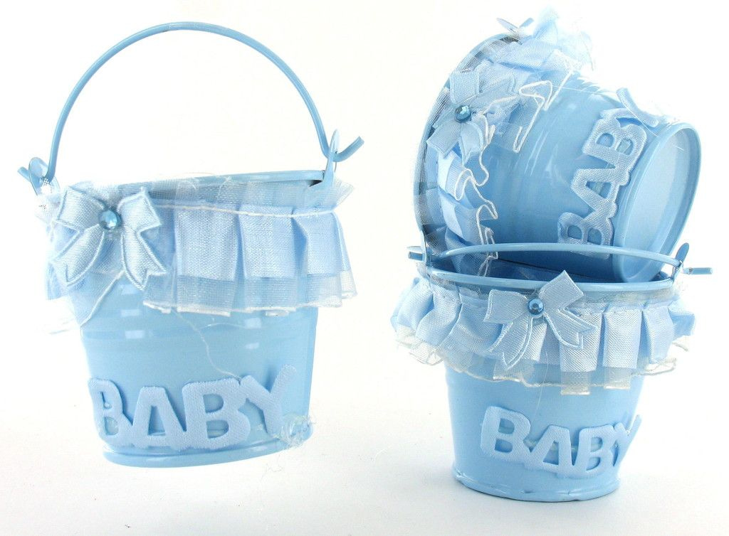 Cute little decoration buckets. Nicely decorated with frills and bows. A nice little something as a thank you for the visit booth or at a baby shower / celebration.