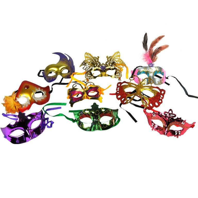 Nice mix package filled with approximately 18 different venetian party masks. Ideal package to fill. Your range with low numbers by type In the pictures you can see which masks you can expect in this beautiful assorted pack party masks!