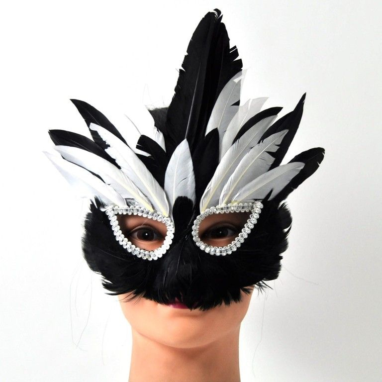 A gorgeous party mask for events, carnival and costume parties. This mask is flexible and is delicious with the face with it. At the top of the mask sitting ornate white and black feathers.