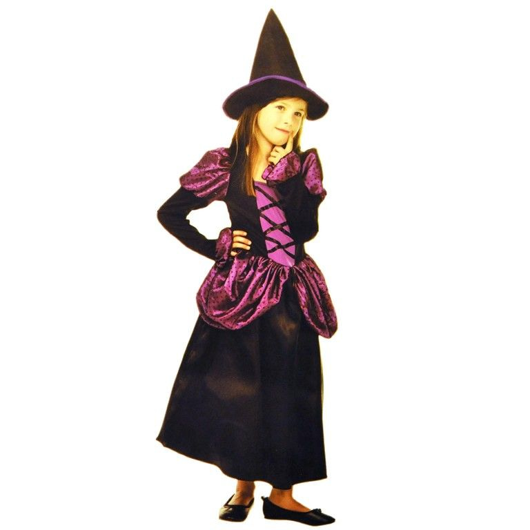 WITCHES COSTUME BLACK / PURPLE FOR CHILDREN - SIZE S