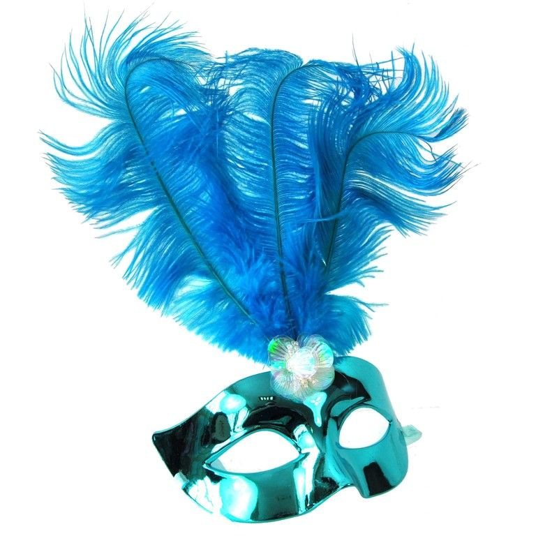 A gorgeous party mask for events, carnival and costume parties. This mask is full blue and has springs at the top.