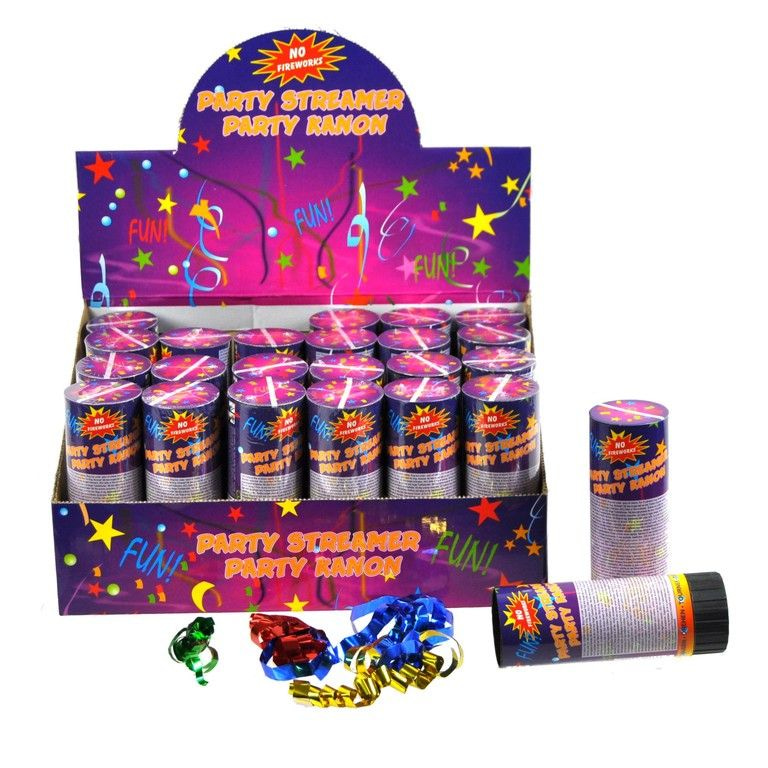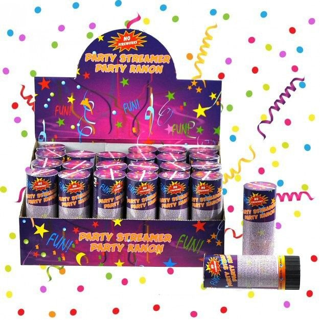 Fun and definitely cheap serpentine guns. Turn hard on the bottom of the sleeve and the serpentine flies out of the gun. Fun for (children) parties, events and theme parties.