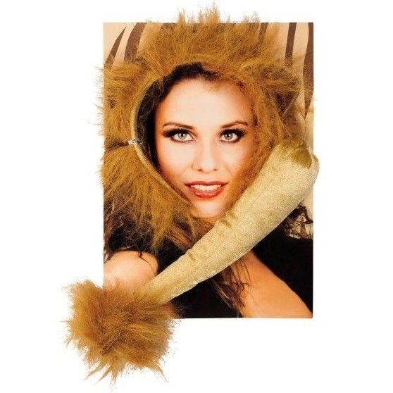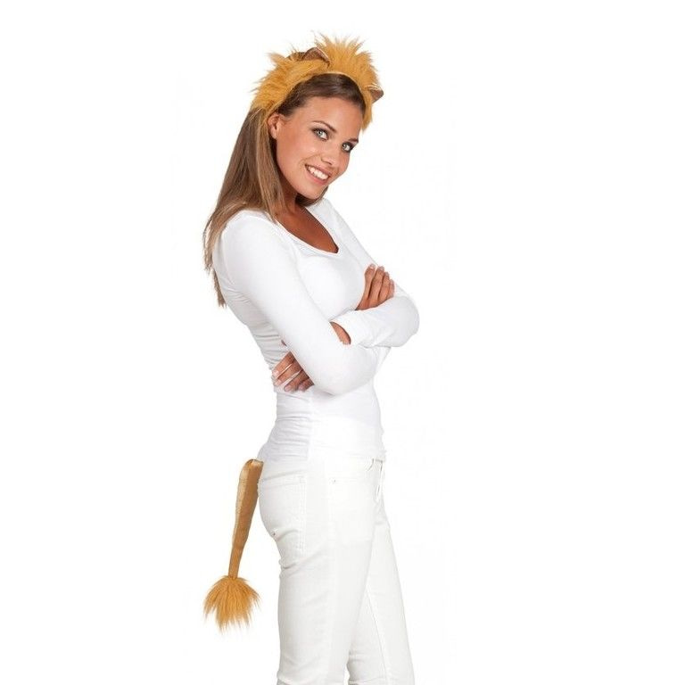 Cute dress accessories packed on a map. This set consists of a diadem with ears and a tail of a lion. Cute as costumes during carnival, Halloween and theme parties.