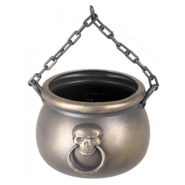 A beautiful decoration cauldron with a chain. And two sides of the boiler is a skull with handle. Thanks so nice as decoration during Carnival, Halloween and theme parties.