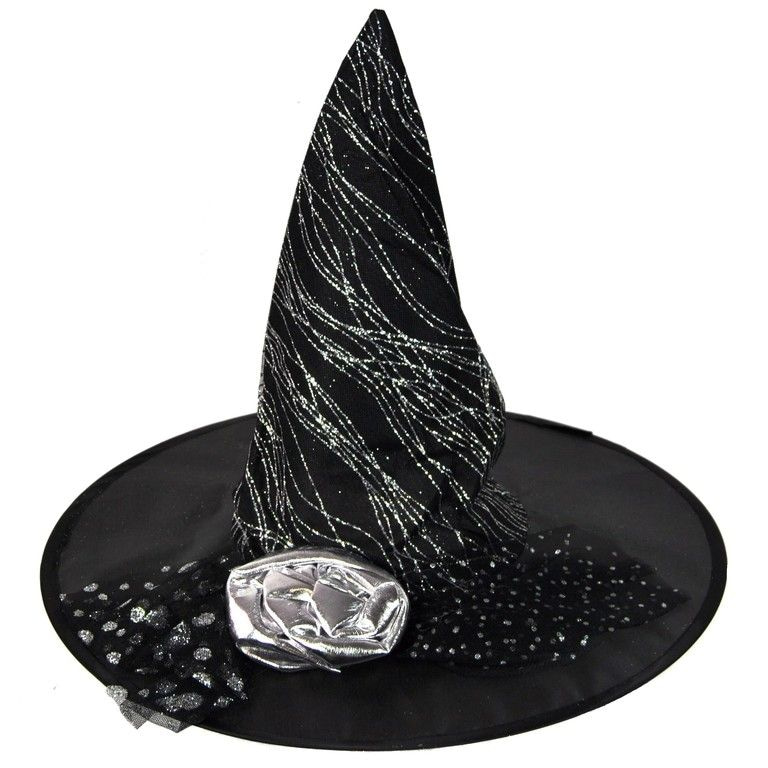 Nice big witch hat with a silver flower on the edge. Ideal for parties, carnivals, Halloween and other festive occasions.