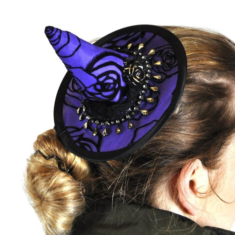 A small witch hat provided with clips on the underside. Through these clips, the hat can be quickly and easily attached to the hair. Cute as a dress accessory times Carnival, Halloween and theme parties.