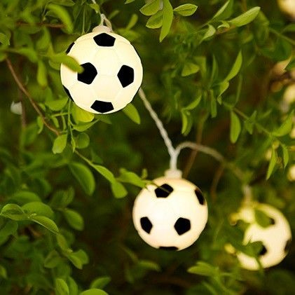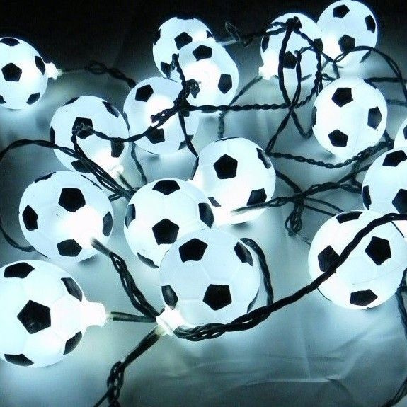 Lighting string with Black, White Football with 10 lights, and plug. Decorate your room or garden with this fun football lighting. Cable length 2.5 meters. Equipped with plug.