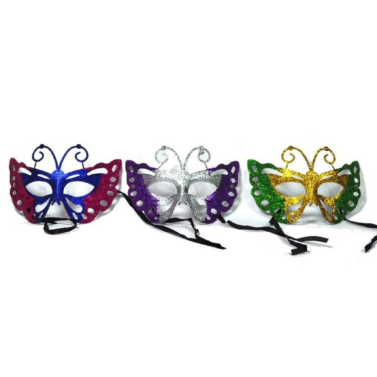 A face mask in Venetian style. This mask covers part of the face and is very graceful. Also equipped with glitter. Ideal for carnival and other celebrations and events.