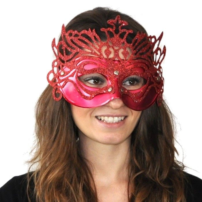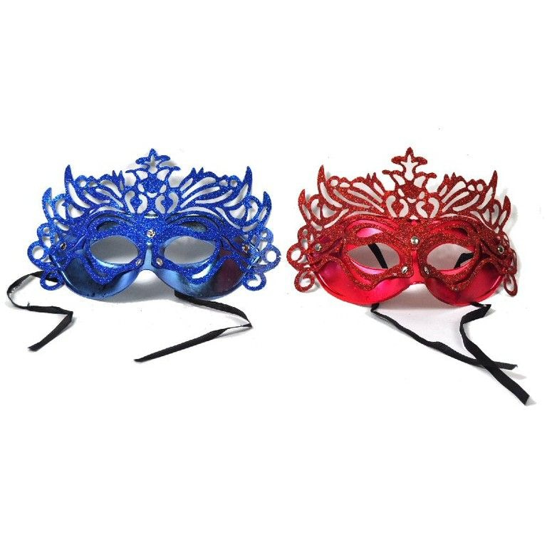 A face mask in Venetian style. This mask covers part of the face and is very graceful. Also equipped with glitter. Ideal for carnival and other celebrations and events.