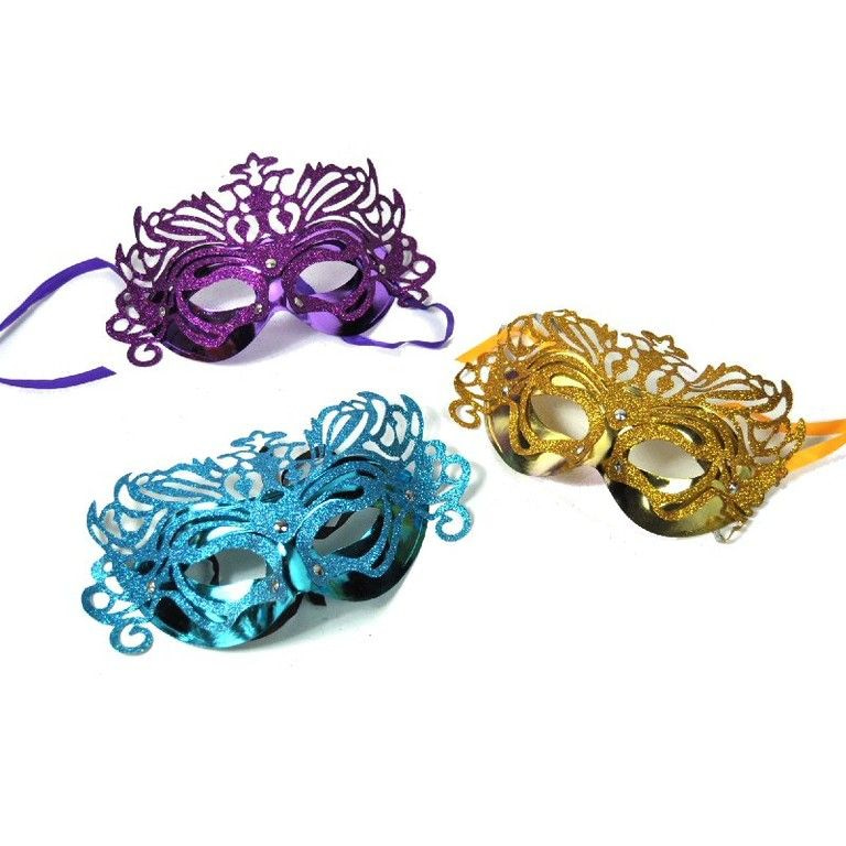 A face mask in Venetian style. This mask covers part of the face is a very graceful. Also equipped with glitter. Ideal for carnival and other celebrations and events.