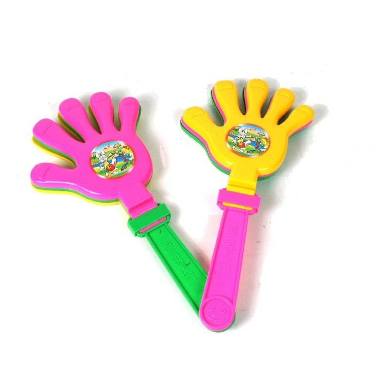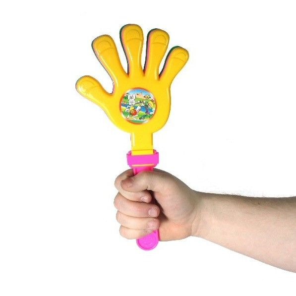 Brightly colored hand slap of 28.5 centimeters long. Delicious noise with the children. Ideal for parties and carnival.