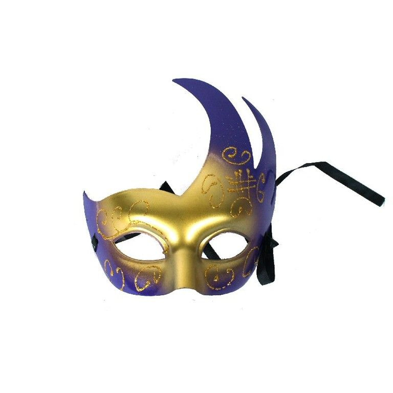 A face mask in Venetian style. This mask covers part of the face and has excellent points upwards. Ideal for carnival and other celebrations and events.