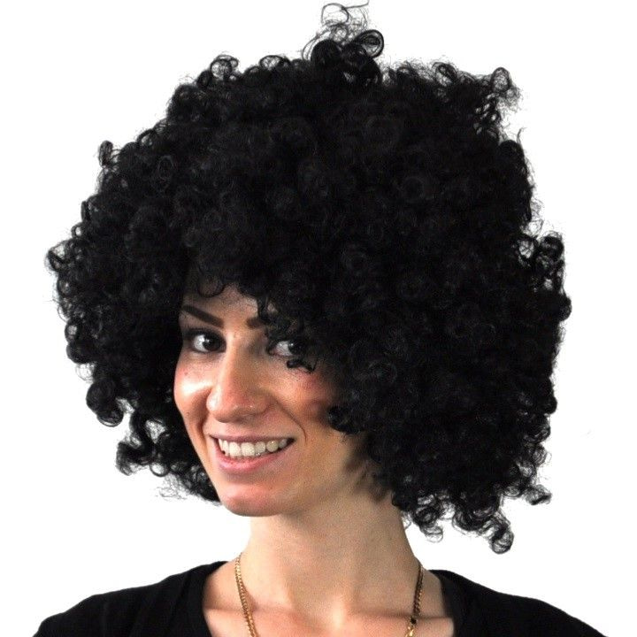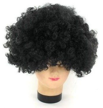 A big afro wig with black curly hair. A nice dress accessory for parties and carnival. Good use for men, women and blame.