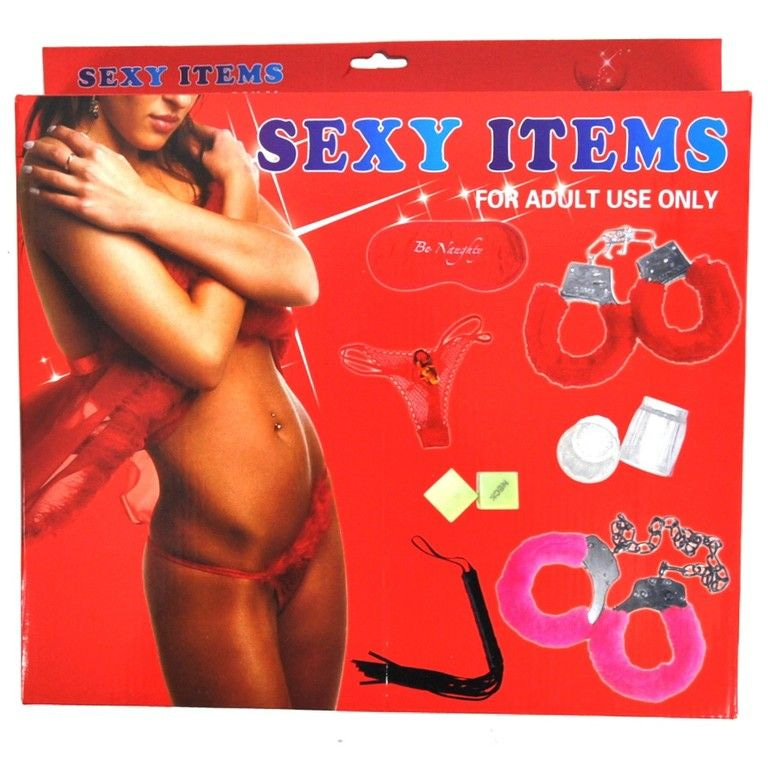 Nice set packed in a big box. This sexy playset includes several fun toys for bed. This package includes: