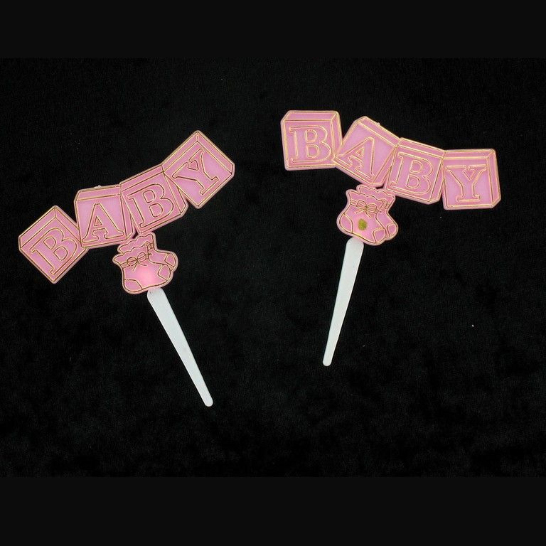 A cupcake stick in the form of building blocks with the text "Baby" it.