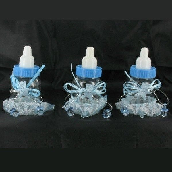 Gorgeous little decoration baby drinking bottles. Nicely decorated with frills and bows. A nice little something as a thank you for the visit booth or at a baby shower / party.
