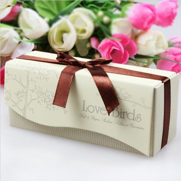 A nice salt and pepper shakers in the shape of two amorous birds. These birds are packed together in a nice gift box. Nice as a small gift for the bride and groom, or as a thank you from the bride and groom.